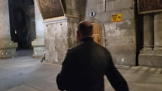 Мне позволили войти - я в закрытом Храме Гроба Господня с нашими цветами, именами и письмами