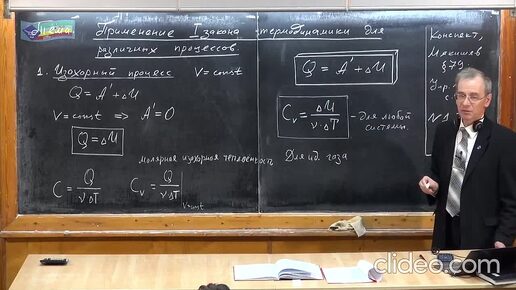 Удельн.и моляр.тепл-ость, ф-ла I закона термодин.для изохорного процесса. Частный случай ф-лы внутр.энергии для идеального газа.