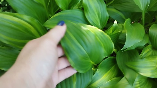 Хоста Swirls (полосатик) и триллиум Sulcatum red в саду ГринДачи в 2025 году.
