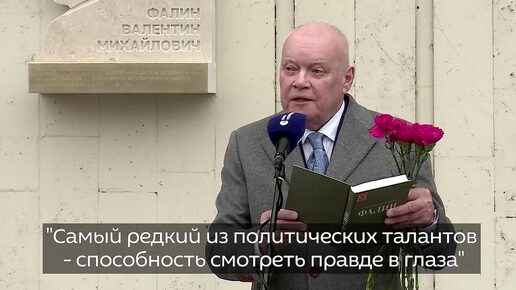 Дмитрий Киселев на церемонии открытия мемориальной доски выдающемуся дипломату, главе Агентства печати "Новости" Валентину Фалину