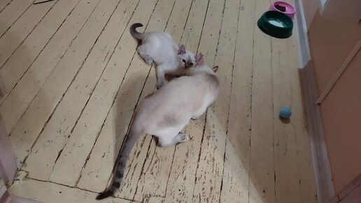 Воспитание подрастающего поколения, мама учит котенка защищаться