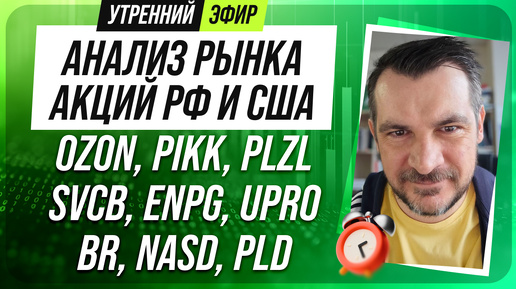 Анализ рынка акций РФ и США/ OZON, PIKK, PLZL, SVCB, ENPG, UPRO/ BR, NASD, PLD