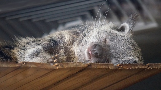 Семейство бинтуронгов, гда мама, два сыночка и дочка, а папы не видно.