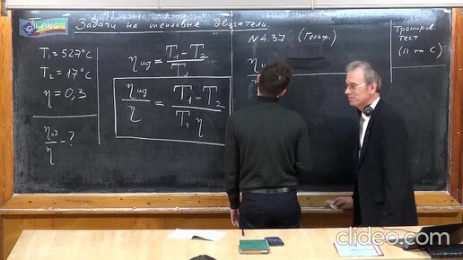 Задача на определение того во сколько раз КПД теплового двигателя меньше, чем КПД идеального теплового двигателя