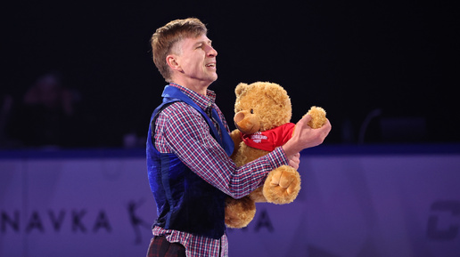 Алексей Ягудин с показательным номером с плюшевым медвежонком