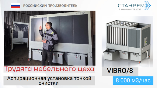 Аспирационная промышленная установка с виброочисткой VIBRO-8 с производительностью 8000 м3