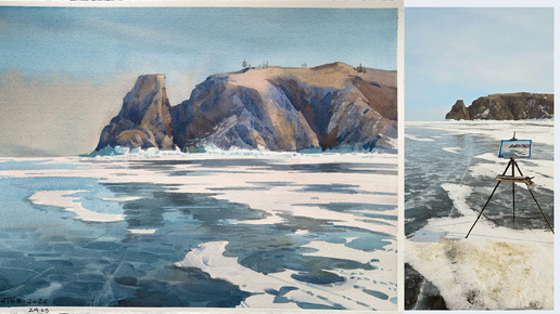 0260324 Мыс Хобой. Байкал. Пленэрная акварель