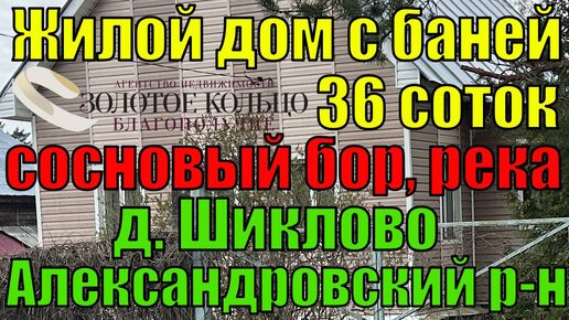 Продается жилой дом с баней на уч. 36 соток, выход в лес и реке, д. Шиклово, Александровский р-н