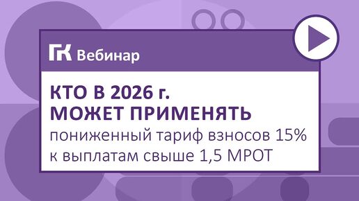 Кто в 2026 г. может применять пониженный тариф взносов 15% к выплатам свыше 1,5 МРОТ