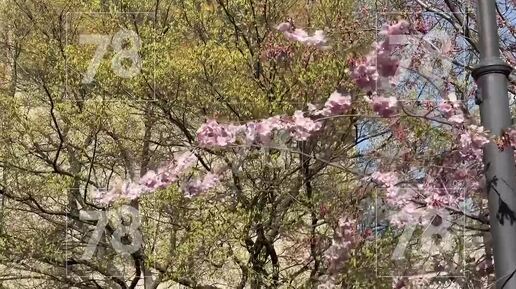В саду Дружбы собралась толпа возле цветущей сакуры