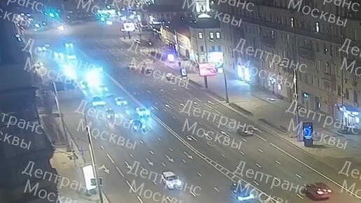 Момент массовой аварии на Садовом кольце публикует Дептранс Москвы
