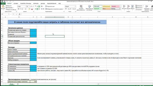 Шаблон Быстрый расчет ROI (возврат инвестиций)