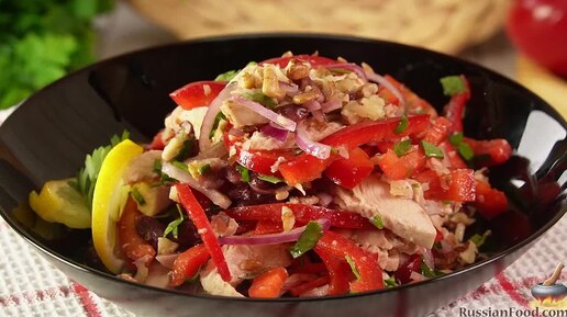 Пёстрый вид, отличный вкус. Салат с курицей, фасолью и перцем