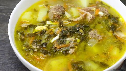 Любимое блюдо без особых хлопот. Зелёный борщ с тушёнкой